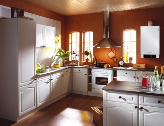 Wiszący, gazowy kocioł kondensacyjny (1-funkcyjny) z modulowanym cylindrycznym palnikiem promiennikowym MatriX i powierzchnią grzewczą InoX-Radial z nierdzewnej stali szlachetnej oraz z układem kontroli spalania Lamba Pro Control.