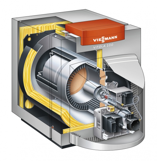 - Olejowy kocioł grzewczy z płynnie obniżaną temperaturą wody kotłowej. Moc znamionowa: 18 do 63 kW.