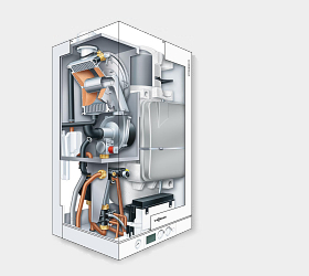 Kondensacyjny kocioł gazowy ze zintegrowanym zbiornikiem ciepłej wody użytkowej.